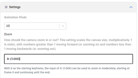 The camera settings allow the animation to move around as if it was "shot" with a camera using zoom, pan and rotate techniques.